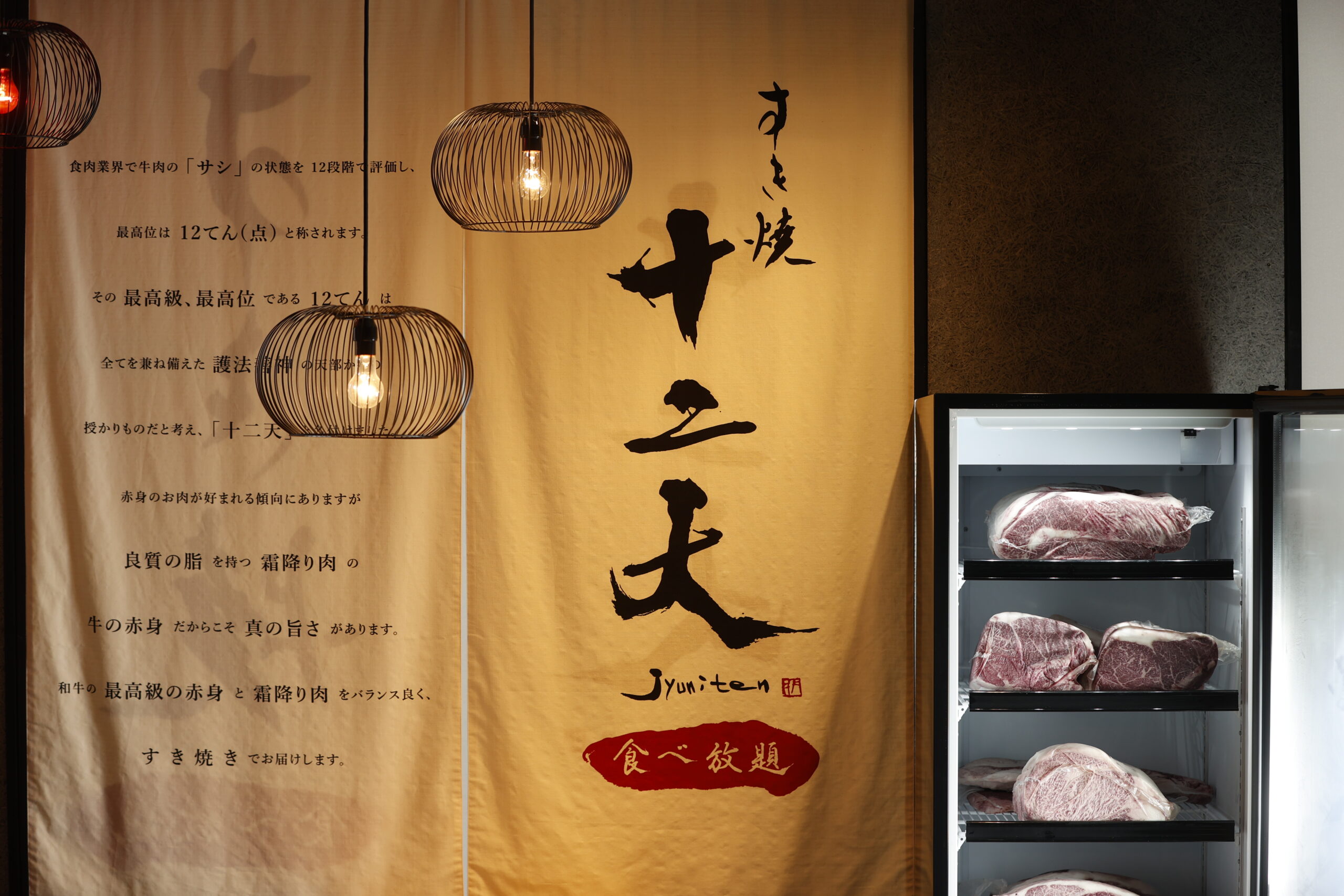 この度食べ放題に特化した「食べ放題すき焼き十二天」が広尾に登場。
